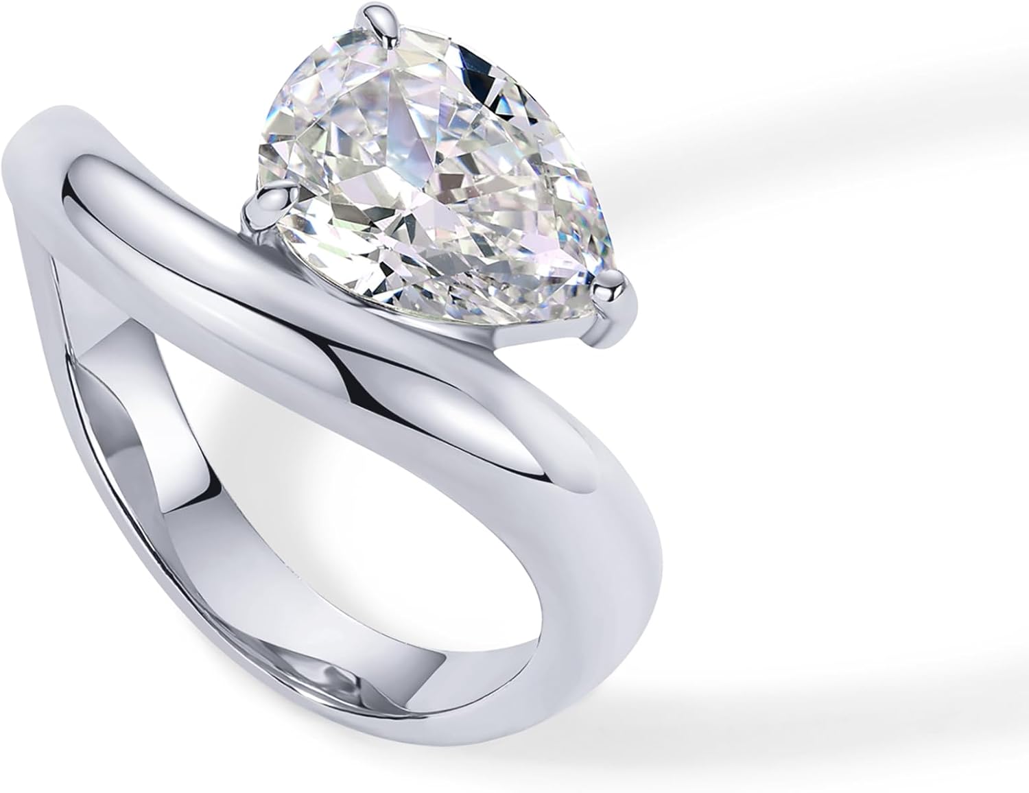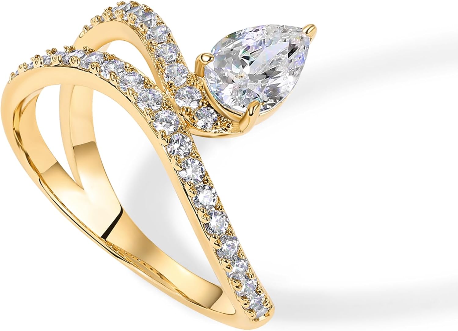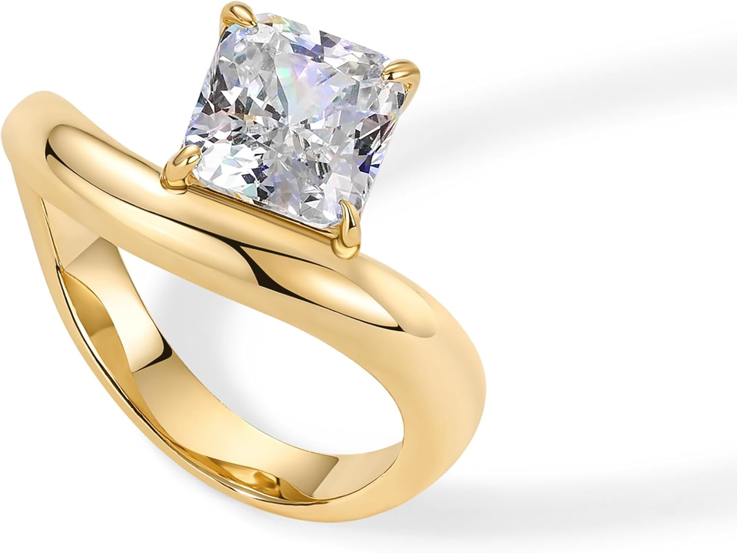 14K Gold Plated Wavy Engagement Ring for Women | Solitaire Cubic Zirconia Wedding Band & Promise Rings for Her | Trendy Fashion Jewelry