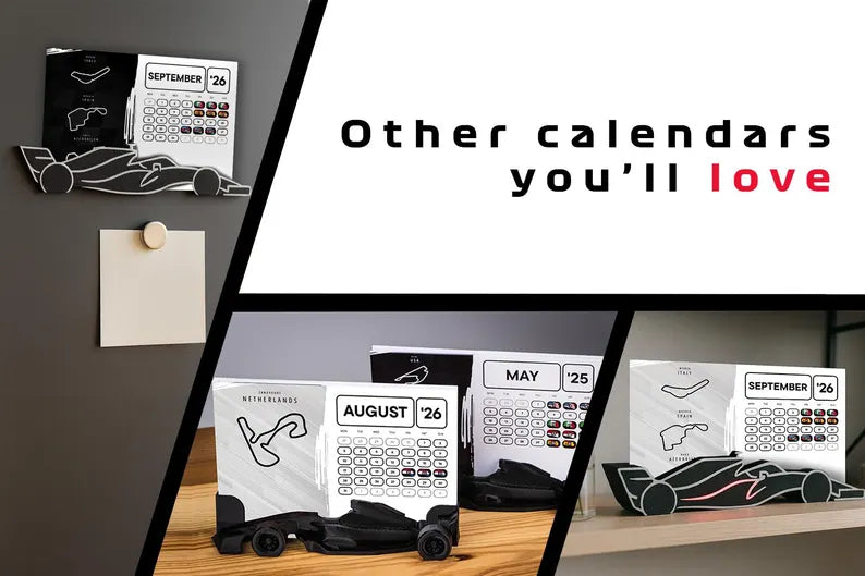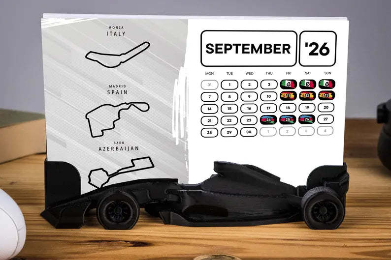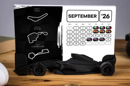 Explore the art of Formula 1, experience the adrenaline of the track, and display your love for motorsport with our Black Formula 1 Calendar. Perfect for racing aficionados and collectors, this calendar promises a year-long journey through the world's most prestigious racing series. Elevate your space and celebrate the speedway with this sophisticated calendar set, your gateway to a year filled with Formula 1 excitement.