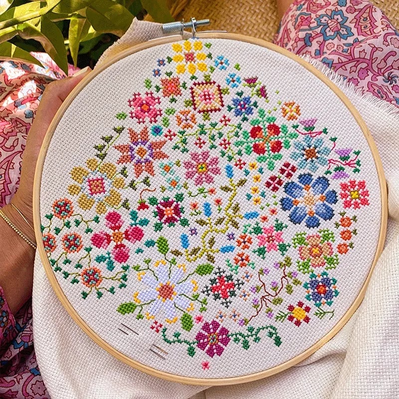 This "Flower a Day" cross-stitch kit uses colorful little flowers to create a blooming garden. Complete one flower each day, taking your time and slowly stitching the entire piece at your own pace.
