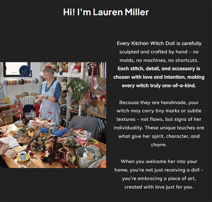 Every stitch, every tiny detail (that potion bottle! that fuzzy scarf!) is made by hand, stuffed with our sweat, joy, and so much cozy magic.